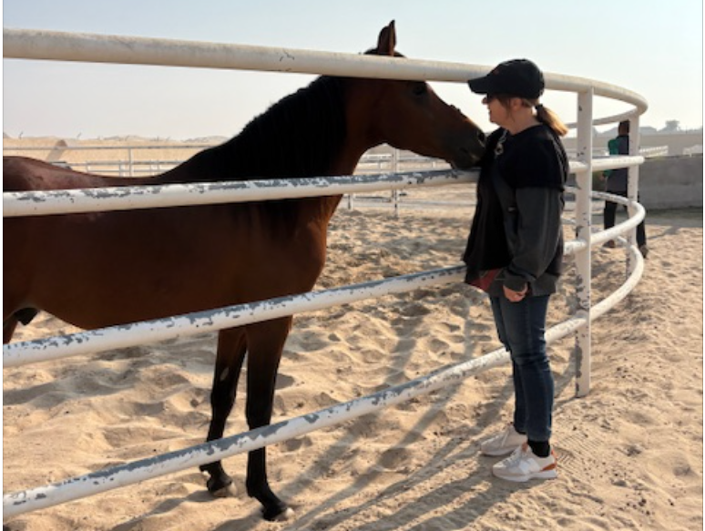 Our Arabian adventure, and when we say Arabian we mean horses, started at sunrise. We hopped into a cab and drove deep into the desert on our trek to EBDAA Stables. For those who have never been to the UAE (United Arab Emirates) it is a country made up of 7 Emirates or states, Abu Dhabi being the richest which is filled with tradition, art, architecture and the love for horses. Whether it be show jumping, endurance or flat racing there isn’t a time when you can’t find horses on your television. It’s also one of the safest cities we’ve ever been to. We never once felt threatened or uncomfortable. Well, except maybe at the airport when customs officers confiscated the drone in our camera pack. Other than that one incident ( as we all know airports can be stressful when coming to a new country) we deeply enjoyed our stay and the drone was returned upon departure.